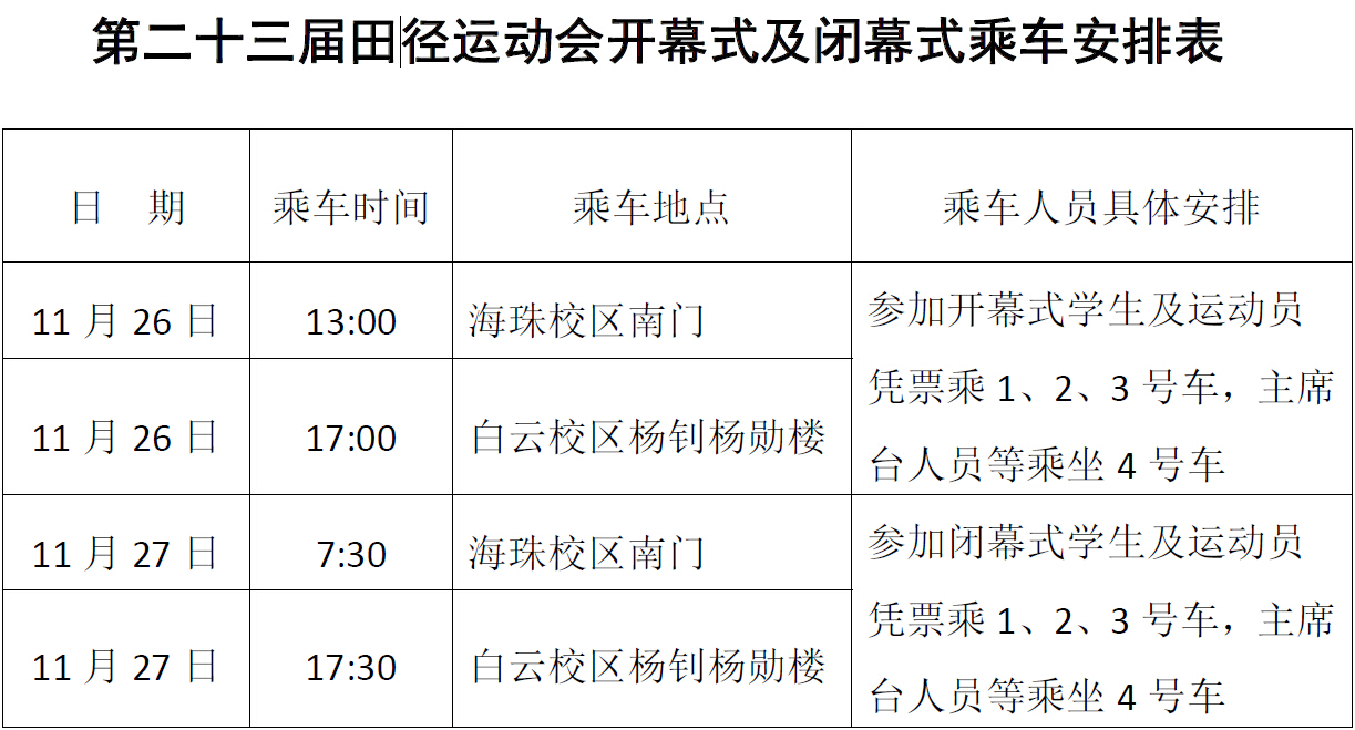 2.第二十三届田径运动会开幕式及闭幕式乘车安排表