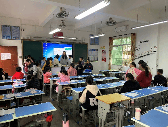 在坚真中学的小学英语班里,来自不同年级的小朋友们正聚精会神地听温佳薇和黄熙悦老师讲解国际音标的相关知识。两位老师循循善诱,充分调动小朋友们的积极性,结合精心制作的PPT课件,带领着小朋友们大声跟读,体会英语发音的精妙。此外,两位老师还开展了生动活泼的趣味阅读活动,为小朋友们讲授常用肢体语言和各种情绪的英文表达方式。