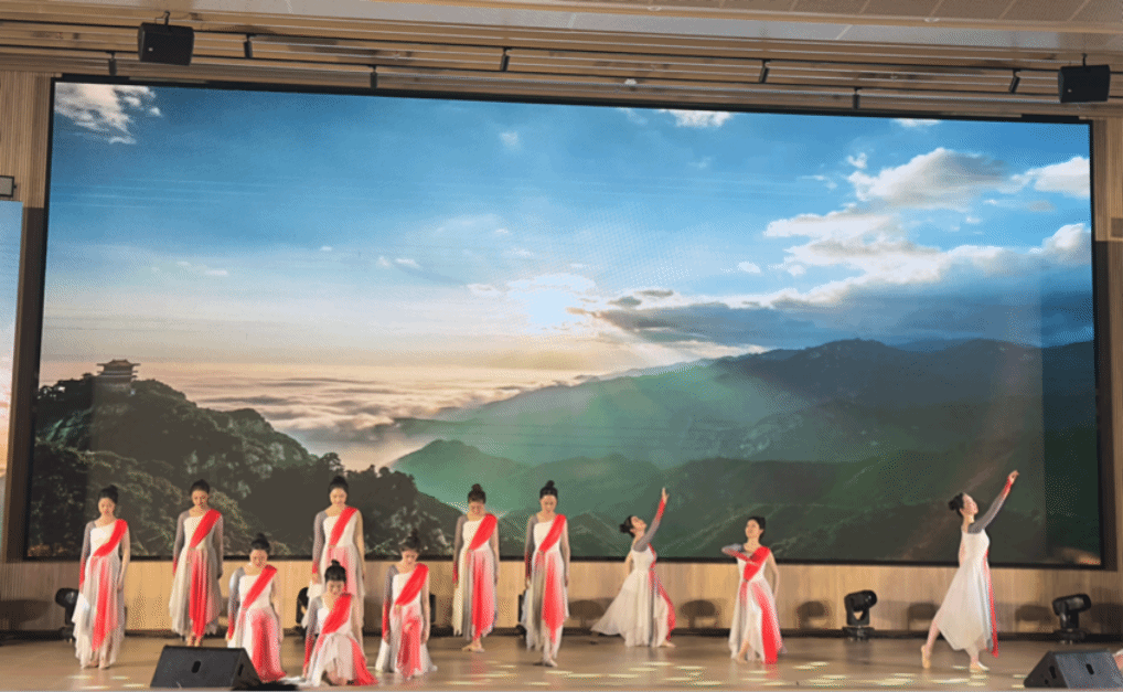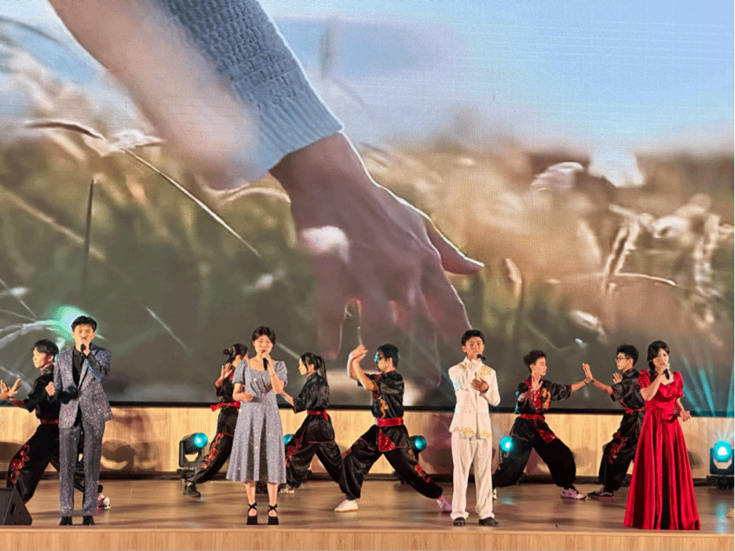 临近尾声,校艺术团合唱队与校健美操队合演节目《一起向未来》,表达了仲恺广大青年自信自强、刚健有为,积极投身“百千万工程”,推动广东高质量发展走在前列的坚定信念。