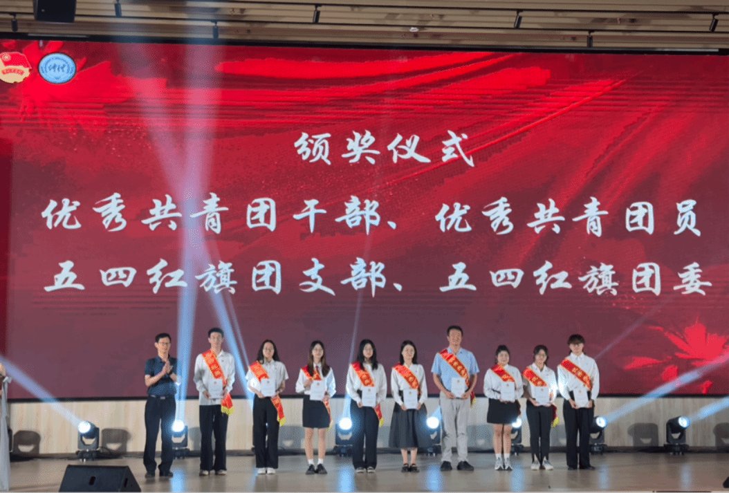 晚会现场,宋垚臻为荣获“仲恺青年五四奖章”荣誉的个人颁发奖章,并为学校“百千万工程”突击队代表授旗。