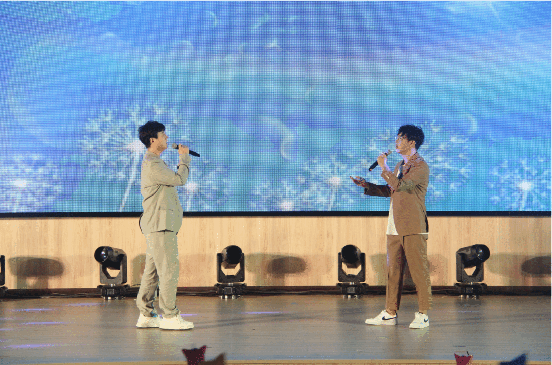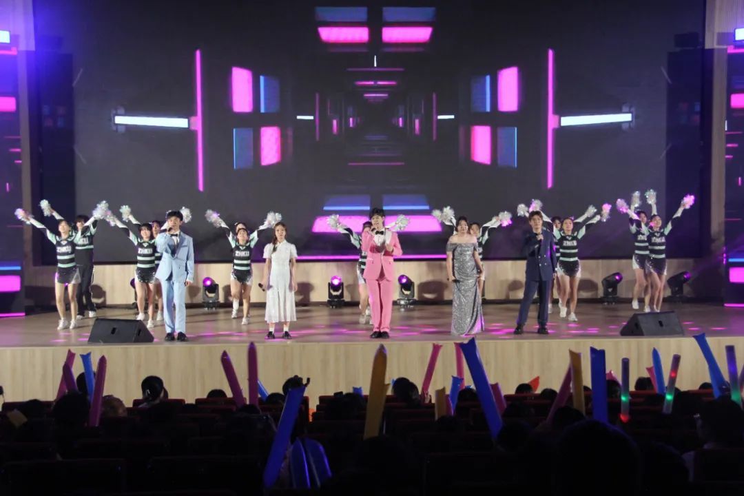 校广播台带来的诗朗诵《青春誓言》表达了不忘初心、砥砺前行的强国之志和报国之情;校艺术团舞蹈队带来的《有我》,灵动飘逸、身姿优美,也透出愿以激昂青春为祖国不懈奋斗的英武与坚韧;轮舞青春节目中,街舞与轮滑碰撞出的激情火花,绝妙创意与新颖形式引发阵阵欢呼;《听你说》《跟着感觉走》《上春山》《像你这样的朋友》《青春歌单》歌曲串烧……一首首或激昂或悠扬的歌曲诠释了仲恺青年的青春活力和对未来的憧憬。其中《听你说》由两位青年教师解廷鑫、于昕塍特别演唱,师生同乐的高涨热情伴随着高高挥舞的荧光棒,将晚会现场变成了一片星星之海。