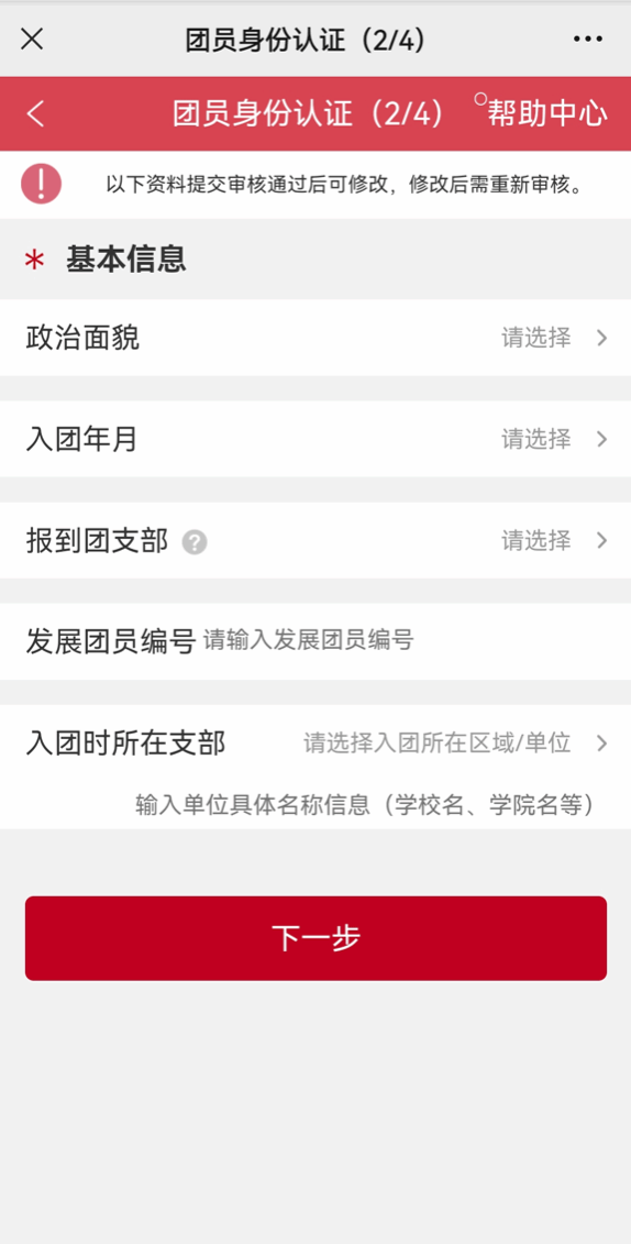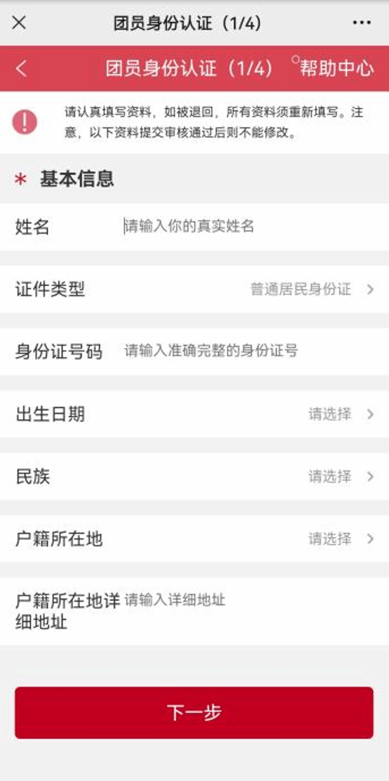 点击“认证资料”,查看个人资料是否有需要补充完善的项目,重点查看核对手机号码、收入、职业、团员编号等内容是否需要更新。修改后请先联系当前所在团支部审核,审核通过后再发起组织关系转接。