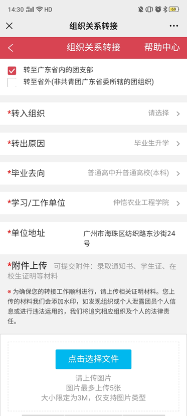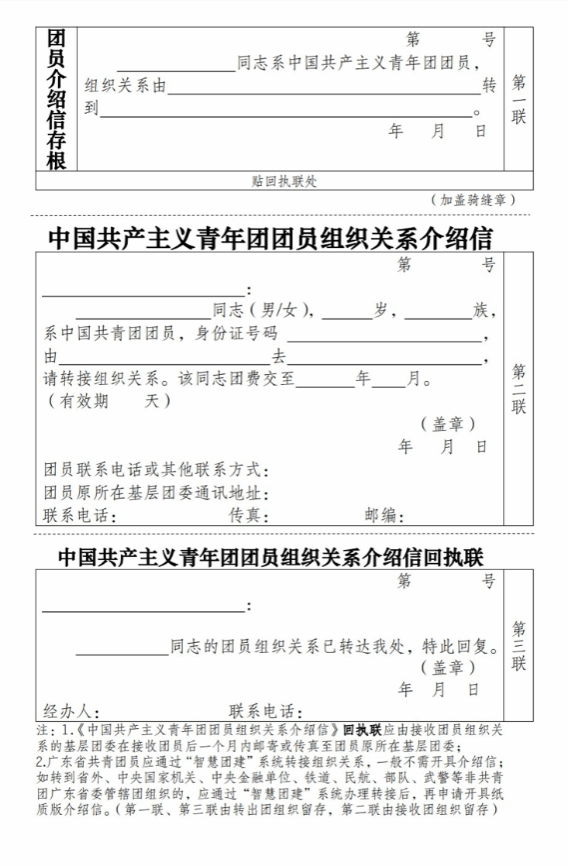 需要注意的是!从广东省外及军队等涉密单位转接过来的需要多上交一份团员组织关系介绍信。