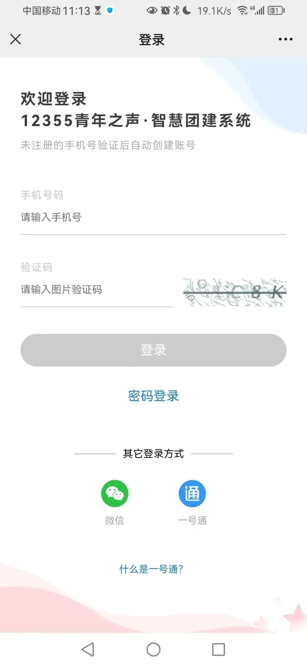 3、来到下图中的页面时,直接输入手机号和验证码进行登录(未注册的手机号验证后自动创建账号)