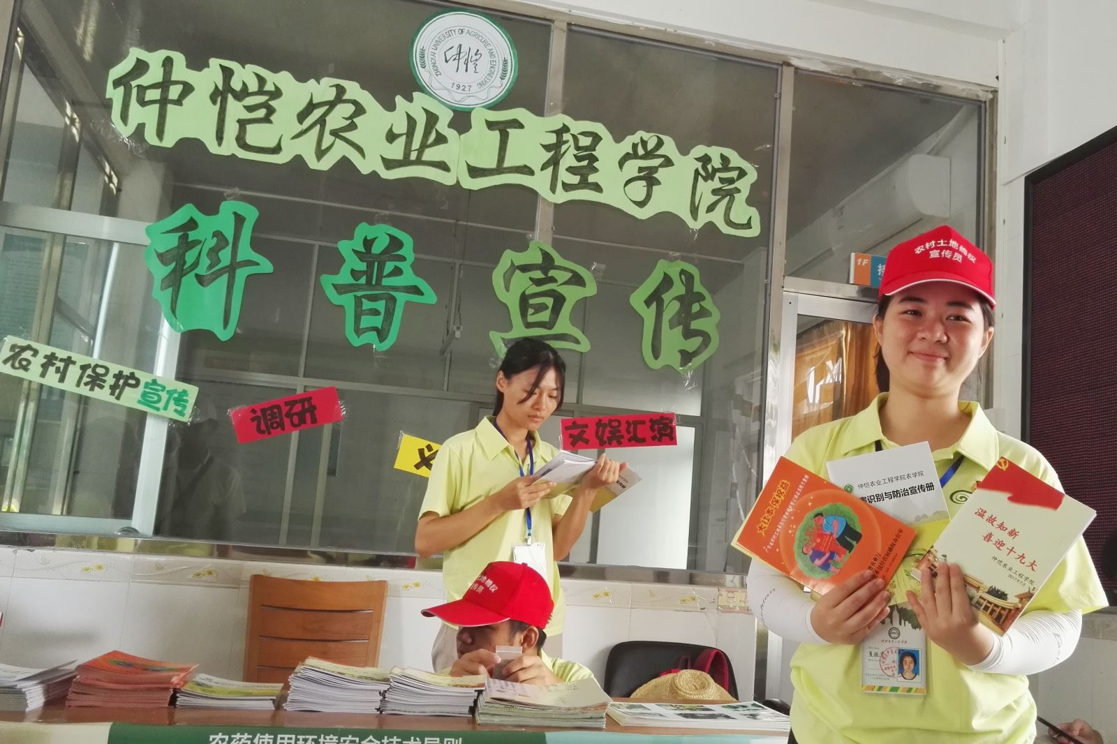 7月13日,农生院与环境学院三下乡的第六天。一大早,农生院和环境学院三下乡的成员伴着江面浓浓的晨雾,踏着初生的太阳向石狗镇卫生院出发,进行环保科普宣传。本次宣传的主要内容有土地确权、农村生活垃圾污染防治和病虫害识别与防治。一行人到达卫生所后,就开始热火朝天地布置现场,或张贴海报,贴照片,或摆放宣传册,整个现场好不热闹。与此同时,队员们也走上街头,派发土地确权和病虫害防治的宣传手册,并引导感兴趣的村民们到宣传点进一步了解情况。