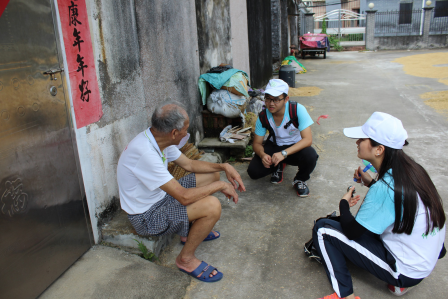 上午,四大组井然有序地分别开展各自的工作。调研组一大早就出发了,今天的任务是进行江门新会茶坑的葵艺调研,并且跟事先约好的家里有制作葵艺的学生家长进行访谈。宣传组则到学校外面派发宣传防诈骗的传单,并告知附近村民今年轻工仲系幸福服务团文艺晚会的时间、地点等信息。而义教组也是照常上课与给学生排练晚会的表演节目。关爱组今天回访了之前探望的独居老人并为他们送上小礼物。