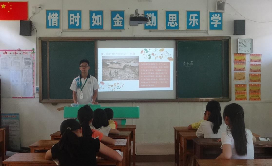 本站讯(仲恺化工“幸福号”服务团)7月15日上午,化工“幸福号”服务团(以下简称“幸福号”服务团)宣传组的组员为学生们开展了以环境保护为主题的课程。