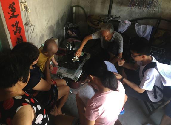 各个队伍小组刚刚进入村子时,由于村民的警惕心和双方的语言交流障碍,调研工作一时进行得不太顺利。不过在调研小组成员表明自己身份并说明来意之后,不少村民还是展现出他们的热情并积极配合调研工作,敞开心扉与调研队员们聊起了本地的时事和情况。许多村民还热情的邀请调研组成员品尝了当地的功夫茶,这让我们感受到了当地居民的淳朴和好客。