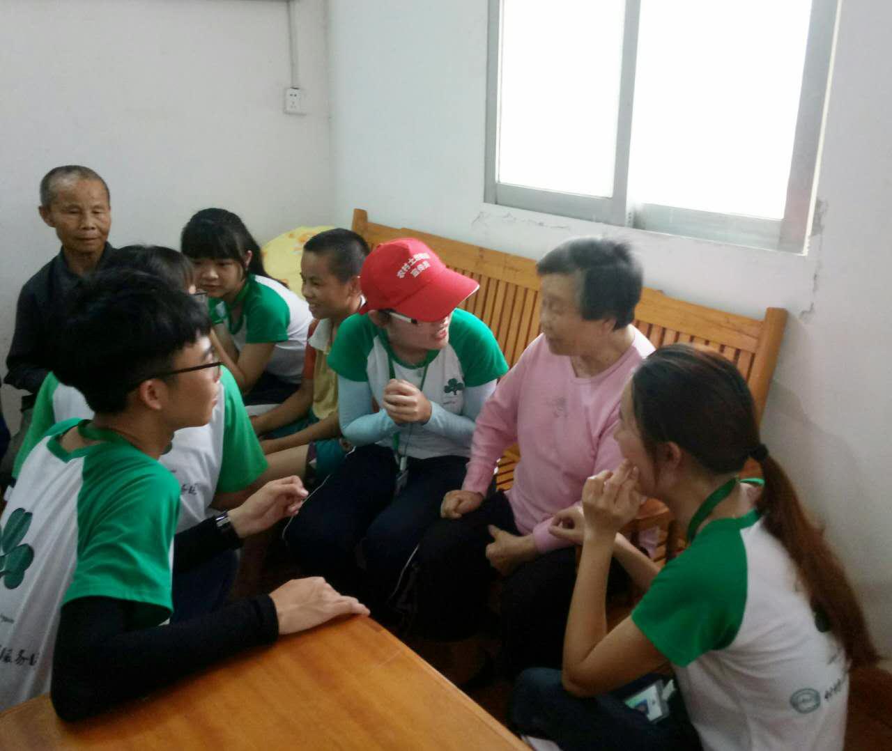 下午2点30分,“幸福号”服务团的所有队员与杨燕老师一同前往秀水镇敬老院探访老人。到达敬老院后,队员们主动为敬老院打扫卫生。同时,部分队员与老人们在大厅内聊天。随后,队员们给老人送上了慰问品并为他们表演了朗诵、手语和大合唱节目。老人们对服务团精心准备的节目都赞叹不已,现场掌声不断,敬老院也因此平添了生气。