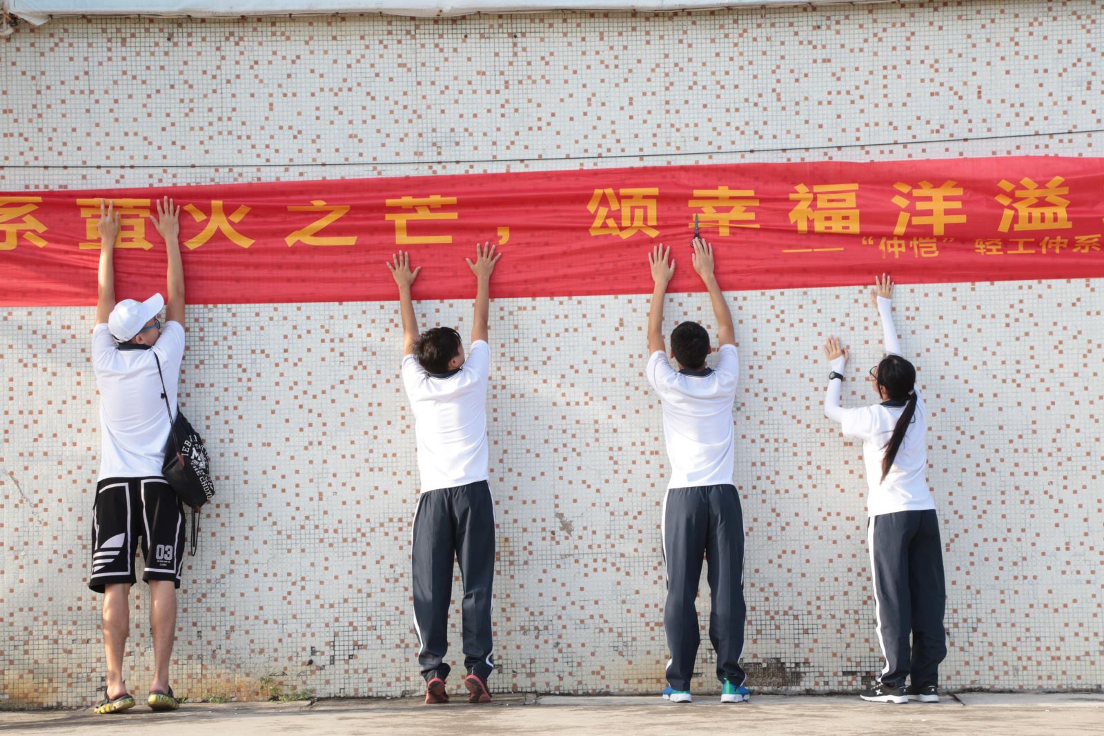 迎着茶坑的晨曦,宣传组的组员们在茶坑学校操场前的舞台上挂起了17年轻工三下乡文艺汇演的主题横幅。看着红色的横幅高高挂起,队员们都满心期待文艺汇演那一天的到来,相信那会是一个美好的晚上。