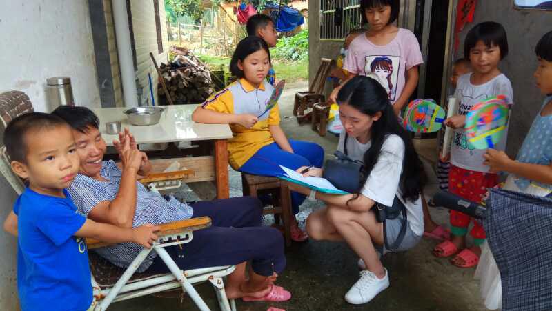 两组队员一起行动,走遍整个西山社后,来到横坑村村口的村委会。组长和相关领导沟通后,得到允许,在村委宣传栏处粘贴土地确权相关宣传海报,继续走入横坑村进行宣传土地确权。刚进村口,有一群热情的小朋友围在组员们身边,组员们和他们进行良好的沟通后,成功打到“小朋友buff”,小朋友们带领两组成员穿街走巷,告知哪户有人家,让队员们加快了调研速度。在和横坑村民宣传土地确权的时候,村民们响应十分积极,表示会响应政府的政策,还表示有热线电话是件十分方便。