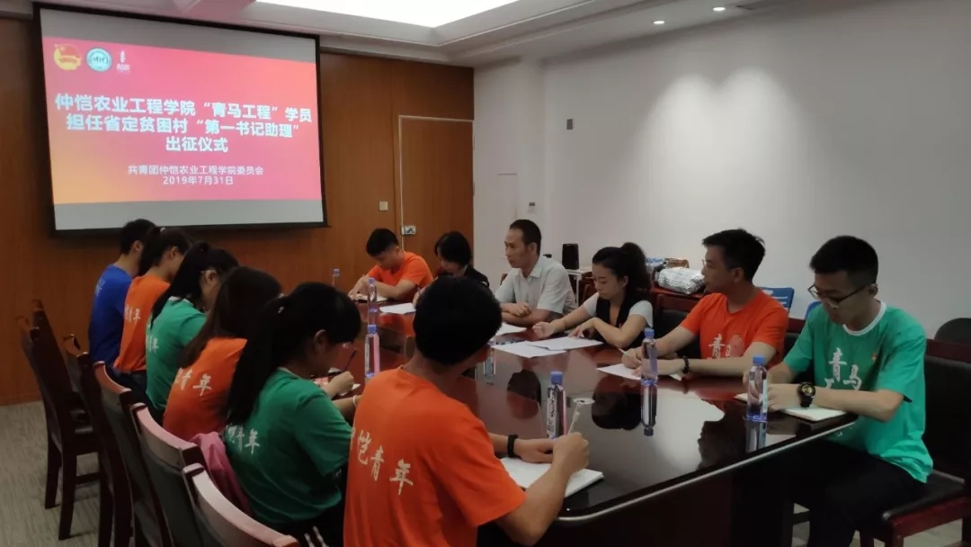 2019年7月31日上午,我校“青马工程”培训班学员担任省定贫困村“第一书记助理”出征仪式在海珠校区行政楼508室举行,校团委书记熊友华、副书记杨珊珊出席并作动员培训,首批8位担任“第一书记助理”青马学员参加了会议。会议由杨珊珊主持。